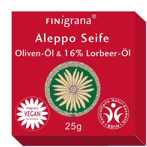 FINigrana Aleppo Oliven Seife mit 16% Lorbeeröl, 25g in Kartönchen