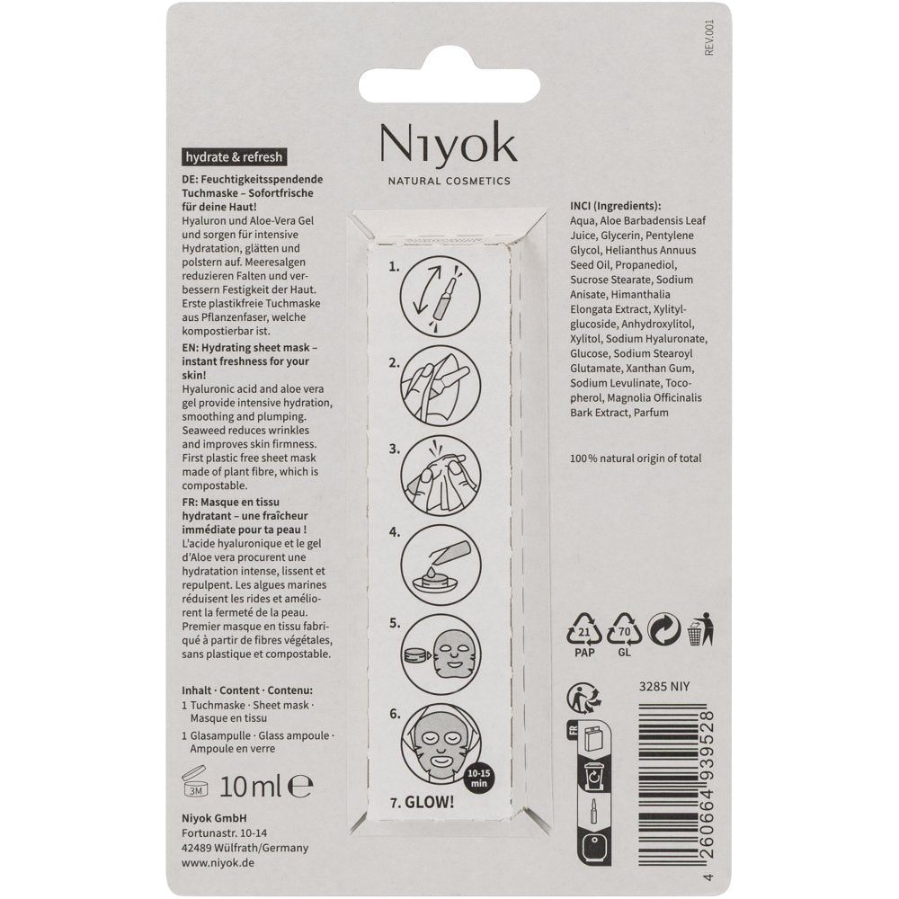 Erlebe intensive Feuchtigkeit und sofortige Frische mit unserer feuchtigkeitsspendenden Tuchmaske aus kompostierbarer Pflanzenfaser. Die innovative Formel mit Hyaluronsäure, Aloe-Vera-Gel und Meeresalgen versorgt die Haut tiefenwirksam mit Feuchtigkeit, polstert sie sichtbar auf und unterstützt die natürliche Hautelastizität.